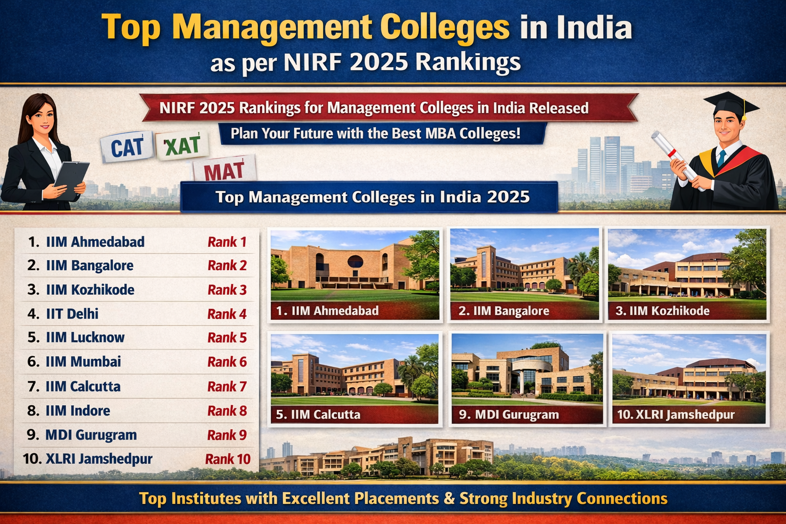 Campus Times/Lucknow: For students aspiring to build a successful career in the management field, choosing the right college is one of the most crucial decisions. To support this choice, the National Institutional Ranking Framework (NIRF) has released its 2025 rankings, offering clear guidance on the best MBA and management institutions in the country.These rankings help students compare institutions on key parameters such as academic excellence, placements, industry exposure, and overall reputation. Admission to top management colleges generally requires candidates to appear for national-level entrance exams like CAT, XAT, and MAT.With the release of NIRF Ranking 2025, students can now plan their preparation and career paths more strategically. By qualifying in these entrance exams and selecting the right institution, aspirants can significantly improve their chances of building a strong and successful future in management. Below is the list of the top management colleges in India as per NIRF 2025 rankings:Indian Institute of Management Ahmedabad (IIM Ahmedabad) – Rank 1Indian Institute of Management Bangalore (IIM Bangalore) – Rank 2Indian Institute of Management Kozhikode (IIM Kozhikode) – Rank 3Indian Institute of Technology Delhi (IIT Delhi – Management Programs) – Rank 4Indian Institute of Management Lucknow (IIM Lucknow) – Rank 5Indian Institute of Management Mumbai (IIM Mumbai) – Rank 6Indian Institute of Management Calcutta (IIM Calcutta) – Rank 7Indian Institute of Management Indore (IIM Indore) – Rank 8Management Development Institute Gurugram (MDI Gurugram) – Rank 9XLRI Jamshedpur (XLRI Jamshedpur) – Rank 10Symbiosis Institute of Business Management (SIBM) – Rank 11All the institutions listed above are known for:Excellent placement recordsStrong industry connectionsExperienced faculty and rigorous curriculumLeadership and skill development opportunitiesGraduating from these top-ranked management colleges not only enhances your academic credentials but also opens doors to high-paying job opportunities and long-term career growth in leading organizations.The NIRF 2025 Management Rankings serve as a reliable benchmark for