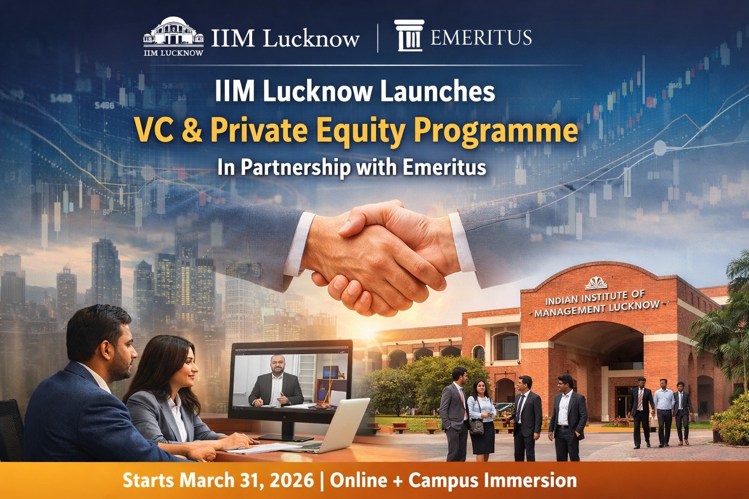 Campus Times | LucknowThe Indian Institute of Management (IIM) Lucknow has announced the launch of a Venture Capital and Private Equity (VCPE) programme in collaboration with Emeritus, aimed at working professionals looking to build expertise in investment and fund management.The nine-month programme will be conducted primarily in online mode, with a three-day on-campus immersion at IIM Lucknow to provide participants with hands-on exposure, peer interaction and leadership development opportunities.According to the institute, the programme’s curriculum has been designed to address the growing demand for skilled professionals in the VC and private equity sector in India. It covers critical areas such as market evaluation, deal origination, valuation methods, portfolio management and exit strategies. The learning approach combines classroom instruction with practical workshops and a supervised capstone project, enabling participants to gain both conceptual clarity and real-world application skills.Programme DetailsThe programme will commence on March 31, 2026. Applicants must have a minimum of two years of professional experience. The course fee is ₹3,20,000 plus GST.Key Features of the ProgrammeStructured VCPE Curriculum: Ten comprehensive modules covering venture capital, private equity, fund formation, due diligence, artificial intelligence in investments and impact investing.Applied Learning Approach: Practical sessions on valuation techniques, deal structuring, capital raising and negotiation processes.Capstone Project: A group-based fund simulation that allows participants to apply learning to real investment scenarios.Campus Immersion: A three-day residential module at IIM Lucknow focused on leadership skills, networking and peer learning.Faculty and Industry Experts: Teaching by IIM Lucknow faculty along with seasoned professionals from the investment industry.Programme Certification: Successful participants will receive a certificate of completion from IIM Lucknow, with an option to obtain Executive Alumni status.The initiative reflects IIM Lucknow’s continued focus on executive education and industry-aligned programmes, catering to professionals seeking to advance their careers in the fast-evolving investment and finance ecosystem.About VCPEVenture Capital (VC) funds