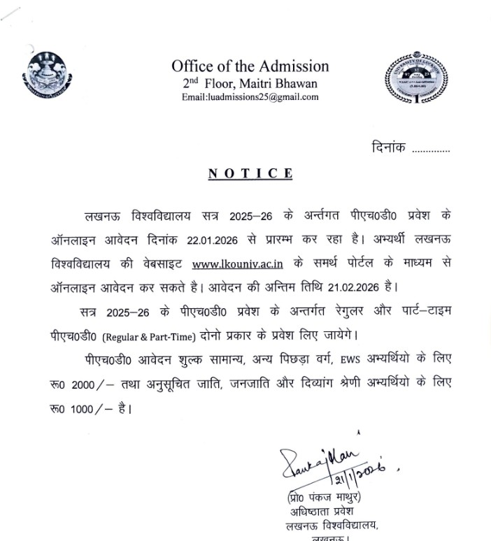 With the PhD admission process now underway, Lucknow University continues to strengthen its research ecosystem, offering aspiring scholars a structured and transparent pathway to advanced academic research.