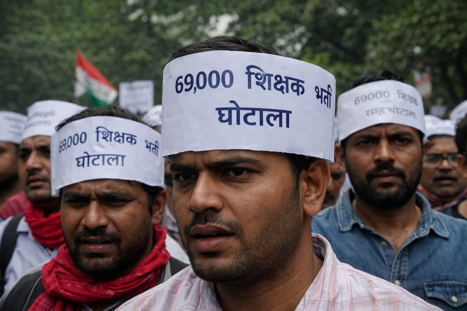 Candidates alleged discrimination in the handling of the 69,000 teacher recruitment case, claiming that backward and Dalit applicants have been waiting for justice for nearly 10 months. Through posters and graphics, protesters argued that while a Supreme Court decision benefiting 15 per cent upper-caste candidates was delivered in a single day, no progress has been made for the remaining 85 per cent from reservation categories. They also pointed out that a UGC-related matter was resolved within a day, whereas the teacher recruitment issue continues to remain pending.