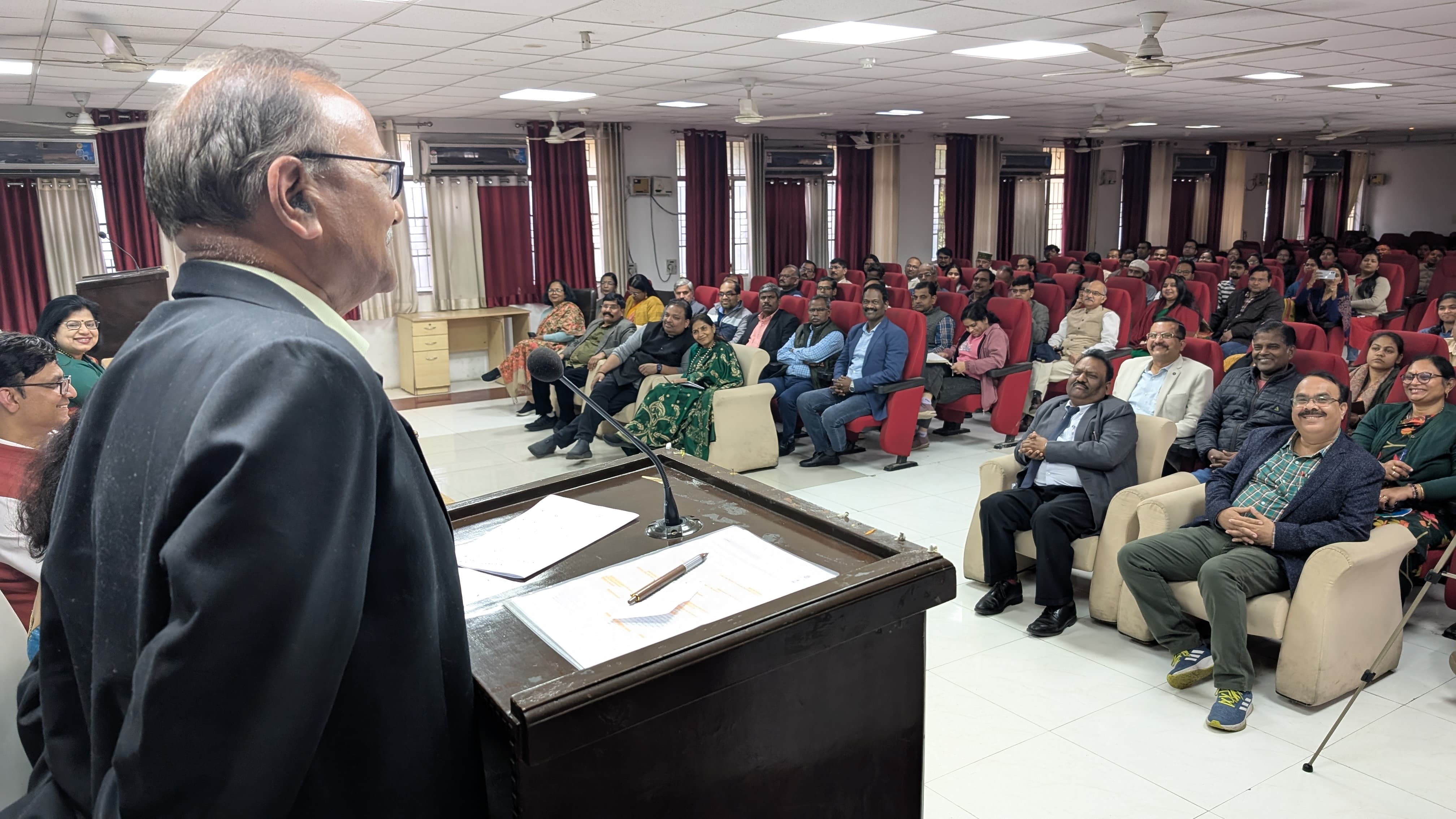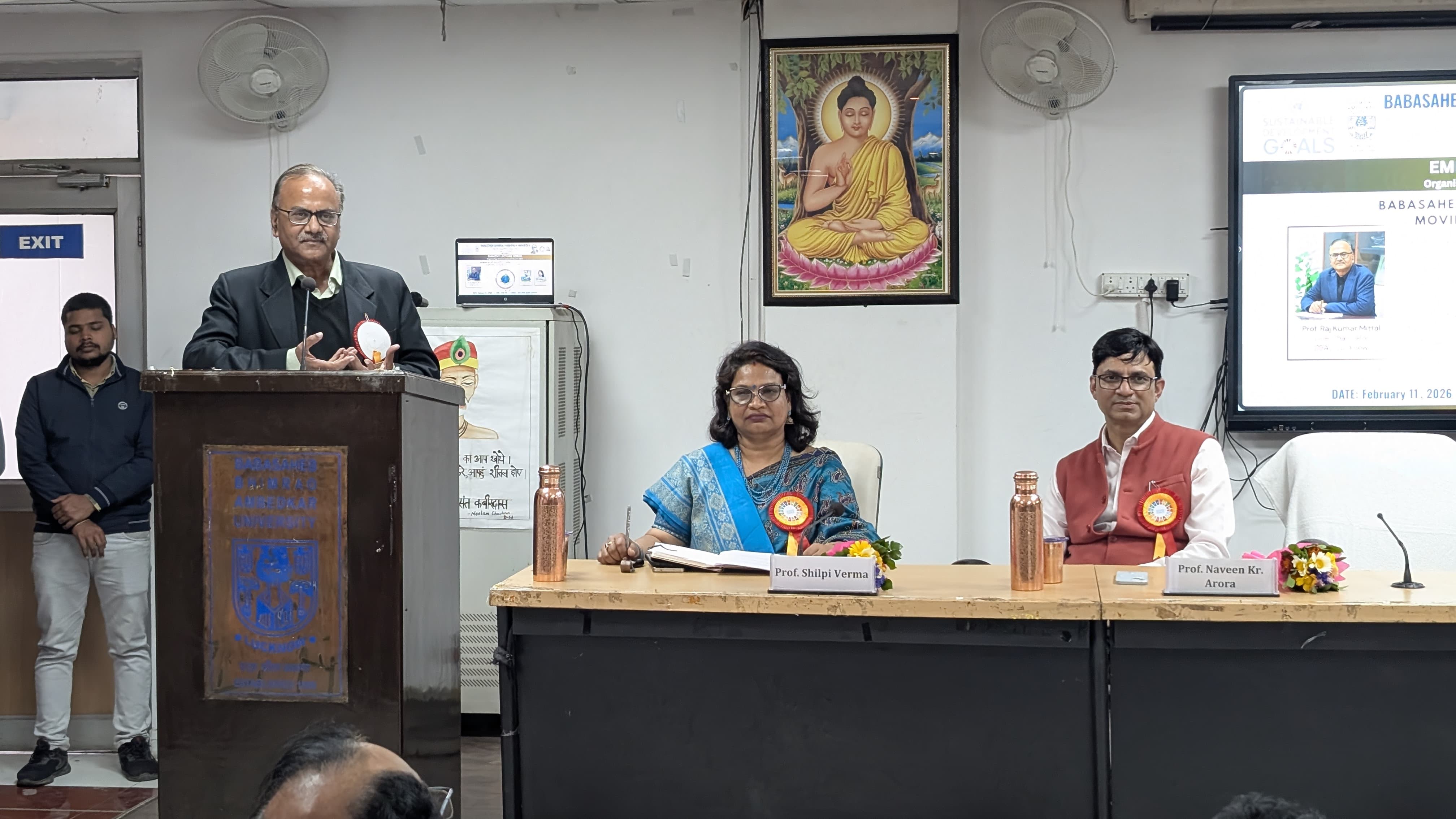 On February 11, Babasaheb Bhimrao Ambedkar University (BBAU) hosted a special lecture titled “BBAU Moving Towards Sustainable Development” under its Eminent Lecture Series. The program was presided over by Vice-Chancellor Prof. Raj Kumar Mittal, with Prof. Naveen Kumar Arora, Chairperson of the SDG Committee, as the chief speaker. Prof. Sunita Mishra and Prof. Shilpi Verma, Chairperson of the Eminent Lecture Series Committee, were also present on stage.