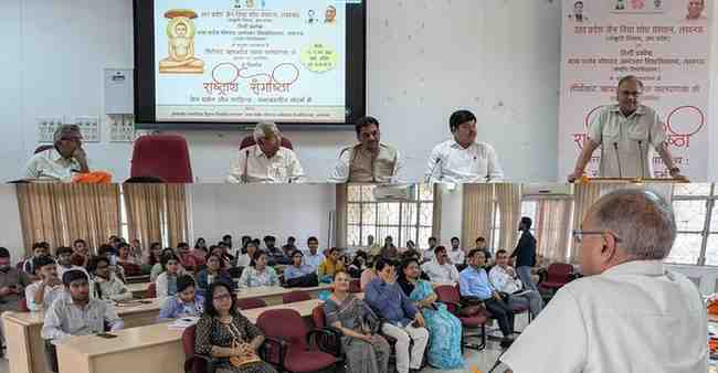 Abhay Kumar Jain emphasized that the Jain principles of Samyak Gyan (right knowledge), Samyak Vani (right speech) and Samyak Charitra (right conduct) guide individuals toward spiritual growth while fostering positive change in society. He added that Jain literature, rich and inspiring, promotes ethics, social awareness, coexistence and human values—essential for building a balanced and conscious society today.