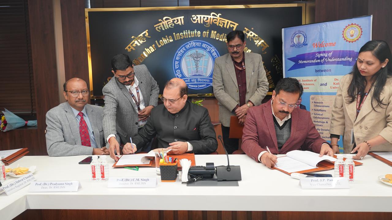 Lucknow | In a major step towards strengthening technology-driven healthcare in Uttar Pradesh, Dr. A.P.J. Abdul Kalam Technical University (AKTU), Lucknow, and Dr. Ram Manohar Lohia Institute of Medical Sciences (Dr. RMLIMS) have signed a Memorandum of Understanding (MoU) to collaborate in the field of medical research and innovation. The partnership aims to make medical treatment more efficient, accessible, and affordable through the use of emerging technologies.