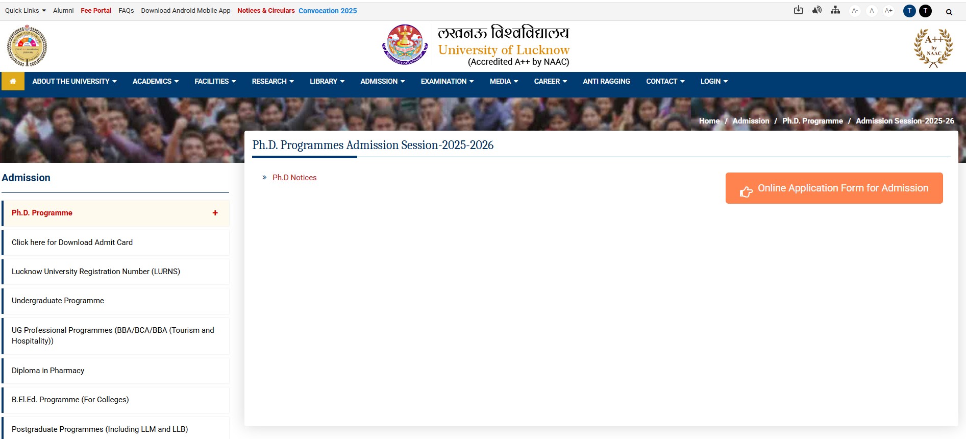 With the PhD admission process now underway, Lucknow University continues to strengthen its research ecosystem, offering aspiring scholars a structured and transparent pathway to advanced academic research.