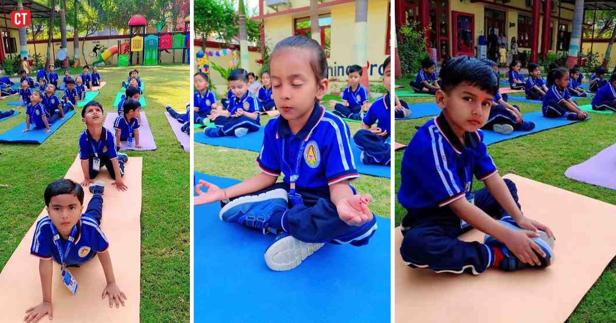 Dressed in their smart school uniforms and standing on colorful yoga mats, the children followed instructions with excitement and curiosity. The session not only introduced them to basic fitness routines but also helped improve their concentration, flexibility, and overall well-being.