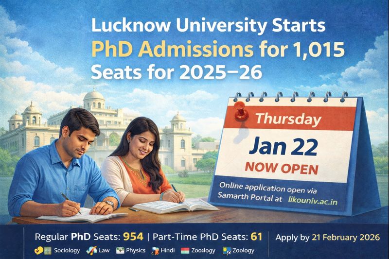 Lucknow | Lucknow University has formally commenced the PhD admission process today (Thursday) for the academic session 2025–26, opening doors for research aspirants across disciplines. A total of 1,015 PhD seats will be filled through this admission cycle, marking one of the university’s largest research intakes in recent years.According to university officials, 954 seats are available under the regular PhD programme, while 61 seats have been earmarked for part-time PhD candidates. The subject-wise seat distribution was released earlier this week, enabling candidates to make informed choices before applying. Applications Open via Samarth PortalEligible candidates can now submit their applications online through the Samarth Portal, accessible from the official website www.lkouniv.ac.in. The last date for submission is 21 February 2026.Applicants have been advised to carefully read the admission guidelines before filling out the form. University officials cautioned that any discrepancy, incorrect information, or unclear document upload may lead to rejection of the application. Application Fee StructureThe application fee has been fixed as follows:₹2,000 for candidates from General, OBC, and EWS categories₹1,000 for candidates belonging to SC, ST, and Divyang (PwD) categoriesPart-Time PhD Option for Working Professionals The part-time PhD programme is aimed at working professionals and candidates with existing job or personal commitments. While the duration is longer than the regular PhD programme, it allows candidates to pursue research alongside employment. Submission of a No Objection Certificate (NOC) from the employer is mandatory for part-time applicants.Seats Available Across Diverse DisciplinesPhD admissions are being offered across a wide range of subjects, including Hindi, Chemistry, Law, Sociology, Physics, Political Science, Zoology, English, Botany, Economics, Education, Sanskrit, and many other science, social science, and language disciplines, reflecting the university’s strong research base. University Emphasises TransparencyVice-Chancellor Prof. J.P. Saini stated that the admission schedule has been released in advance to ensure the process is completed smoothly, transparently, and within